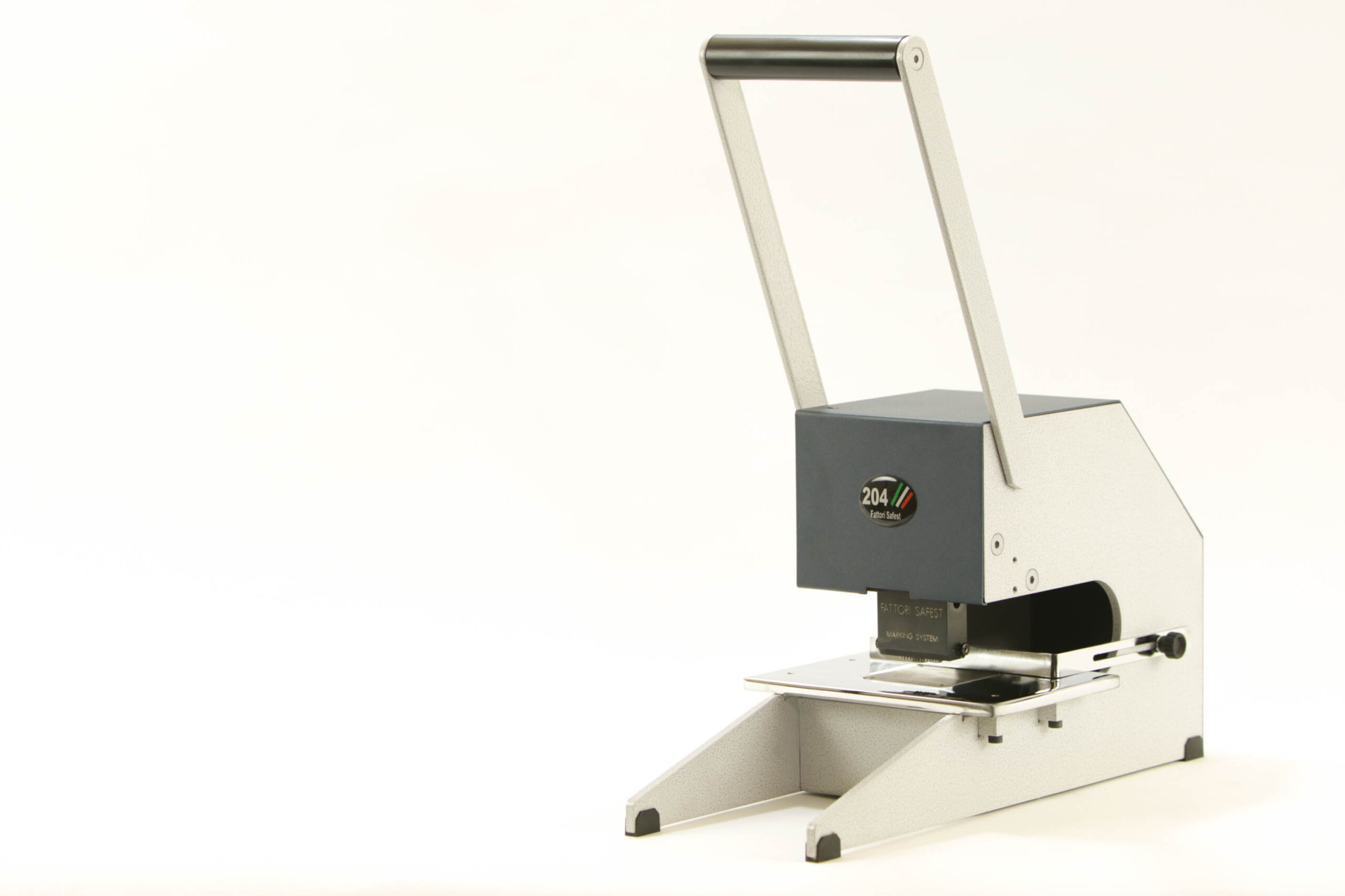 Il corpo macchina è in ferro verniciato a polvere con temperatura a 200° ed i punzoncini che danno corpo ai caratteri sono in acciaio trattato termicamente. La marcatrice è fornita di una pratica piastra d’appoggio con squadretta mobile per la regolazione della profondità d’introduzione.