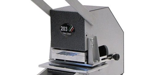 Macchina perforatrice di numeri o lettere, anche in combinazione tra loro. I caratteri, 6 nella versione standard, si trovano su placchette metalliche intercambiabili che vengono agevolmente inserite dalla parte anteriore della macchina, esse vengono fornite come kit di numeri o lettere.